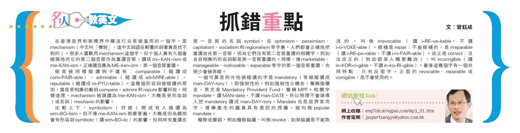 2009年6月25日《明報》 名人教英文