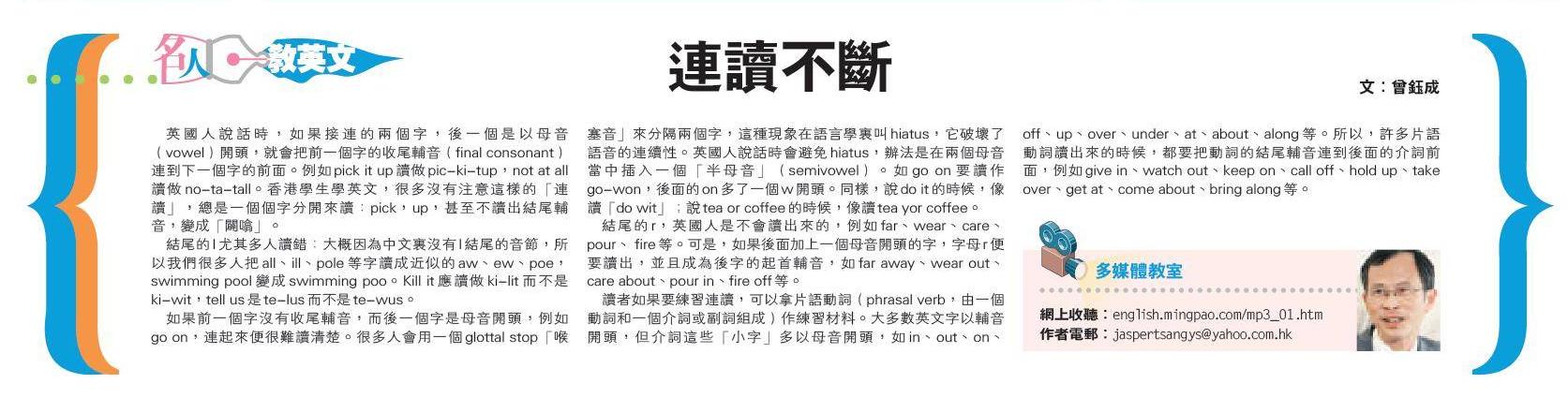 2009年9月8日《明報》 名人教英文