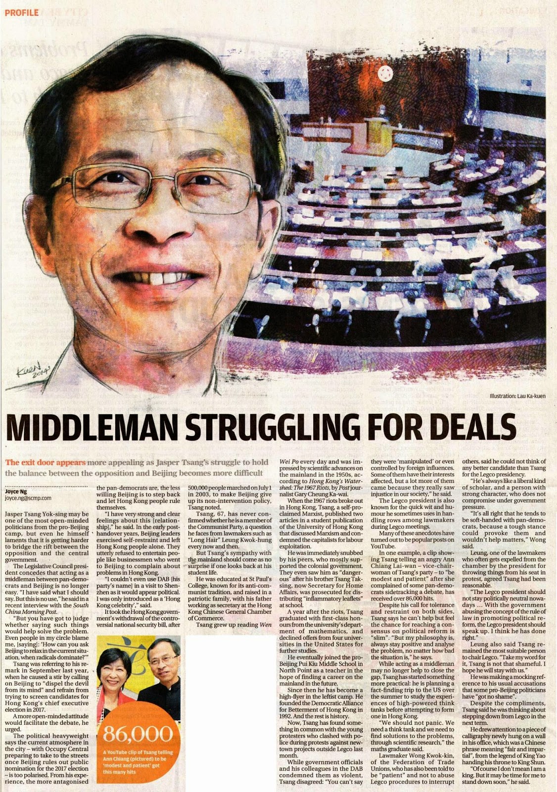 The Legislative Council president concedes that acting as a middleman between pan-democrats and Beijing is no longer easy. “I have said what I should say. But this is no use,” he said in a recent interview with the South China Morning Post.