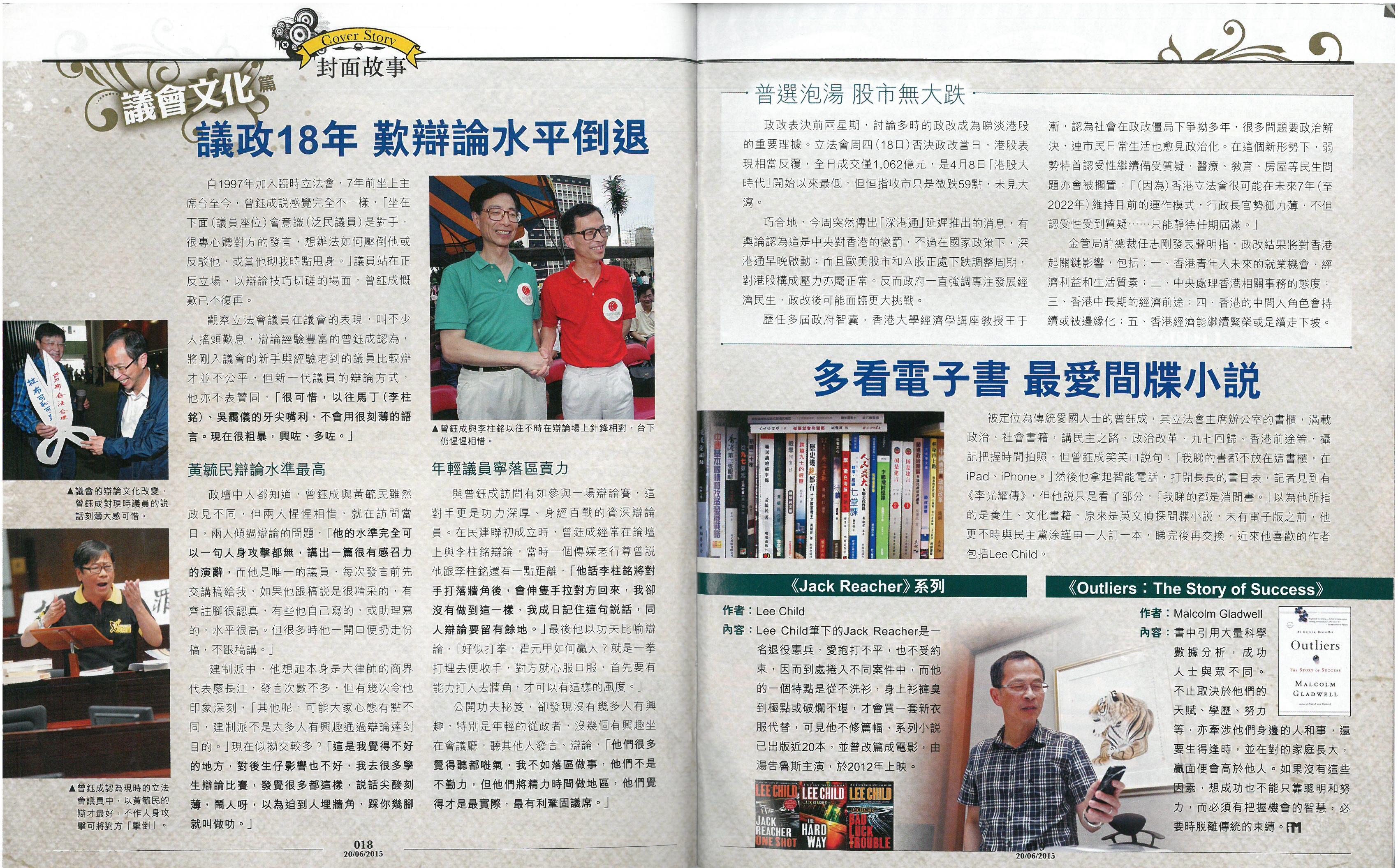 否決政改後,香港正式踏入選舉期,今年底的區議會選舉,有人視為雨傘運動的試金石,然後是明年的立法會選舉,2017年的特首選舉。一切依舊,巨輪繼續滾動,但內裏的螺絲釘可能經已損耗。一度盛傳會參選特首的民建聯創黨主席、立法會現任主席曾鈺成有明確的親中形象,但同樣獲得泛民尊重,縱橫政壇20多年,身處中央、港府和政客之間的關係和角力,他如何看後政改時代的香港?
