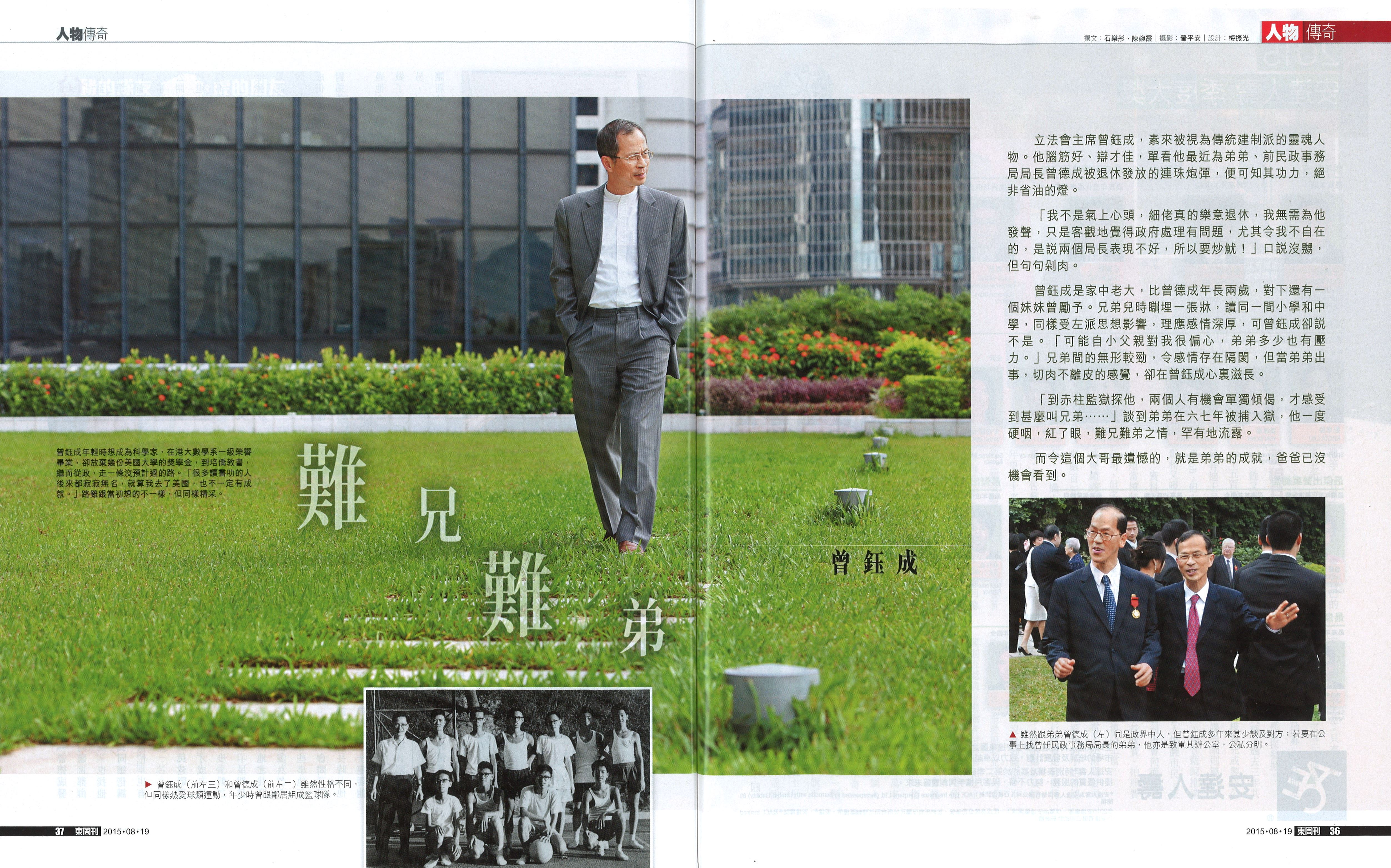 曾鈺成與曾德成兩兄弟,一個在政壇縱橫多年,位至立法會主席;另一個則在傳媒筆耕,位至總編輯,繼而被前特首曾蔭權賞識,○七起擔任民政事務局局長。兩人多年來鮮有公開談論對方,直至最近曾德成被退休,身為大哥的曾鈺成終按捺不住,接二連三幫弟出聲。