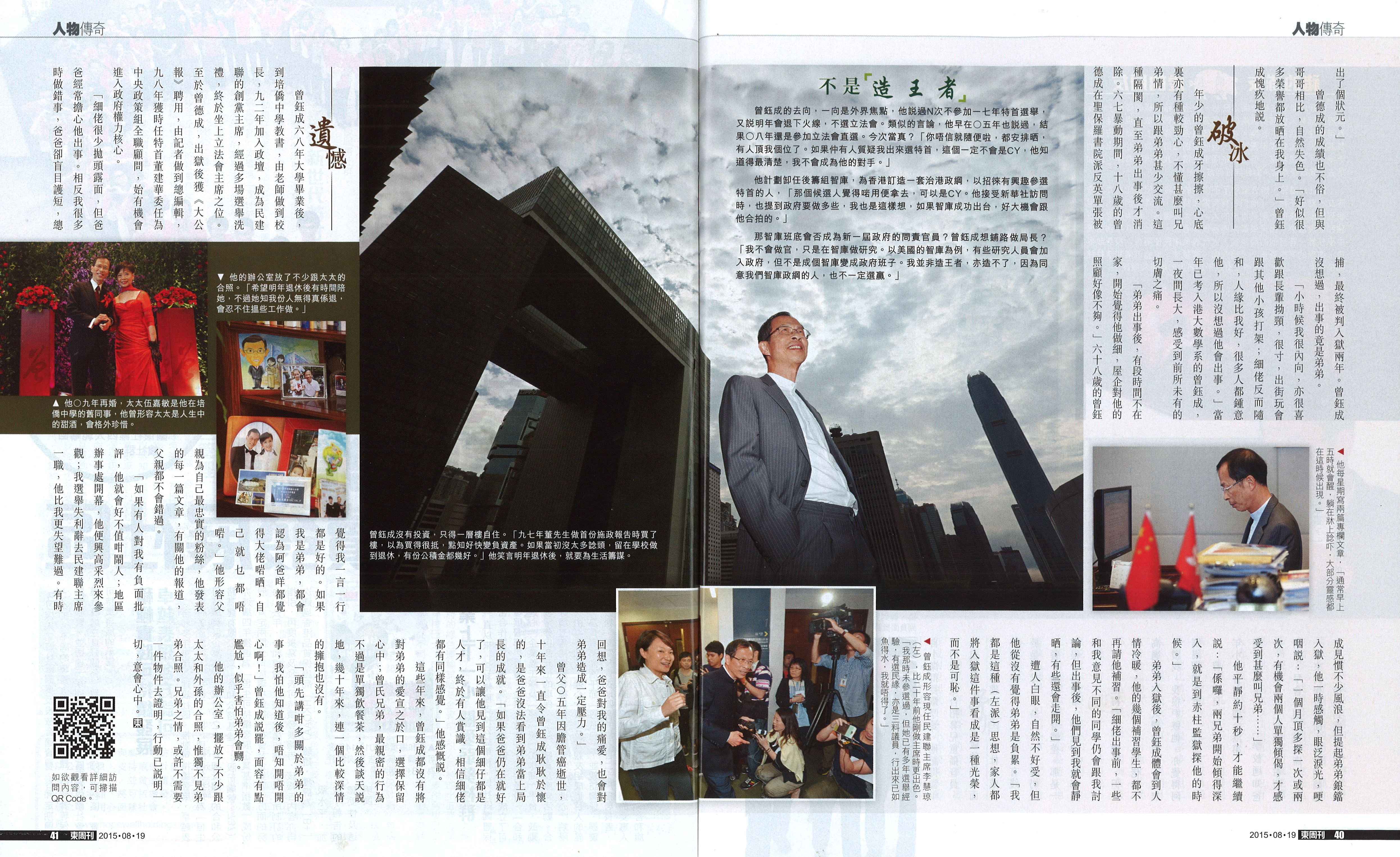 曾鈺成六八年大學畢業後,到培僑中學教書,由老師做到校長,九二年加入政壇,成為民建聯的創黨主席,經過多場選舉洗禮,終於坐上立法會主席之位。至於曾德成,出獄後獲《大公報》聘用,由記者做到總編輯,九八年獲時任特首董建華委任為中央政策組全職顧問,始有機會進入政府權力核心。