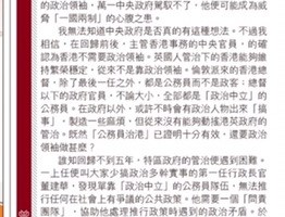 政治領袖要有政治理念,知道何事應為、何事不應為;有政治智慧,辨別何事可為、何事不可為;有政治技巧,能夠爭取支持,化解阻力,凝聚共識;有政治魅力,贏得人們敬佩、信仼和擁戴。香港有精明的商界奇才、懂行的專業精英和幹練的政府官員,就是沒有政治領袖。