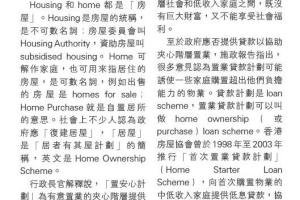 今年的《施政報告》(Policy Address)用了很大篇幅討論房屋政策(housing policy) 。行政長官在報告中提出的新措施之一,是推出「置安心資助房屋計劃」。這計劃的英文名稱是My Home Purchase Plan,並不包含表示「安心」的字樣。