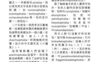 來自希臘文的名詞phobia,即恐懼或仇視。在-phobia 前面加上不同的前綴,表示各種特殊的恐懼; 例如對高度的恐懼叫acrophobia,對困在狹小空間的恐懼叫claustrophobia,對身處廣闊空間的恐懼叫agoraphobia,對外國或外國人的害怕或仇視叫xenophobia等。