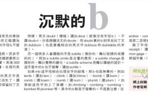 自金融海嘯爆發以來,“debt”(負債)成為報章上最常見的單詞之一,很少人會對它陌生。但是,我不時仍聽到有人把它錯讀為deb – t。這是因看字讀音而犯的錯誤,沒有留意當中的字母b不發聲:debt應讀如det。