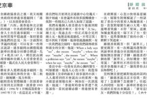 在我訪美前不到一個月,彭定康剛去過美國,見了克林頓總統,回港後還說克林頓很支持他在香港的政改。香港報章大篇幅報道彭定康「旋風式」訪美,我以為美國人也會注意到,起碼應知道香港將要從英國手中歸還中國、彭定康是英國派來的最後一任總督。誰知我在美國遇到的人,大部分竟沒聽過香港這地方,有的還以為香港在日本!