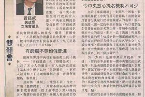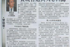 臨近結束時,他說了一段與香港政制發展有關的話。這段話,卻似乎兩面不討好:他沒有表示支持二○一二年雙普選,所以沒有贏得「民主派」的喝采;另一方面,他又好像主張行政長官要由立法會裡最大政黨的黨魁出任,於是有「親中」人士批評他在鼓吹「西敏寺式議會制」,牴觸《基本法》。