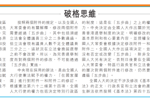 基本法附件一和附件二規定的是行政長官和立法會產生辦法的大框架,選舉制度的細節則由特區本地立法規定。要改變後者,只須修改本地法律,毋須啟動修改兩個附件的「五步曲」。