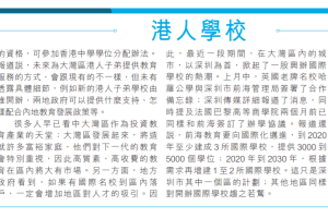 居住在大灣區的港人子弟雖然可以入讀區內的國際學校,但有一部分家庭會希望子女在香港人辦的學校裏學習香港的課程,銜接香港的高等教育,甚至可以和在香港上課的學生一樣,得到特區政府的資助。