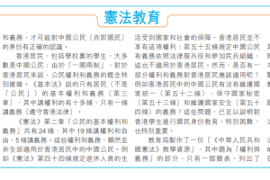 憲法和基本法教育的目標,首先應是培養學生對國民身份的認知和認同;而要達到這個目標,公民的基本權利和義務應是教學重點。