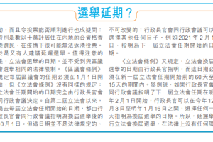 近日新冠肺炎疫情大爆發,有意見認為立法會選舉應延期舉行。這在法律上沒有任何障礙,但如果要把本屆立法會的任期延長,會抵觸基本法。