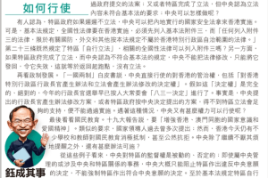 中央政府要掌握對香港特別行政區的全面管治權,要行使對特區高度自治的監督權。這監督權怎樣行使?