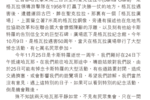 在古巴到處都見到切·格瓦拉(哲·古華拉)的肖像,卡斯特羅的肖像卻極少出現;關於格瓦拉的書刊多不勝數,卡斯特羅的宣傳品卻幾乎沒有。