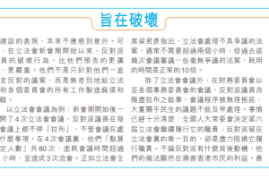 全國人大常委會決定第六屆立法會繼續履行它的職責,反對派留在立法會裏的唯一目的,卻是盡力阻撓它履行職責。不論他們有什麼背後動機,他 們的做法顯然損害香港市民的利益。