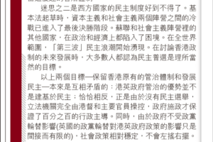 基本法是1985年至1989年寫成的。當時,香港經濟發展舉世矚目,中國改革開放初見成效,全球民主浪潮勢不可當。在這樣的形勢下,基本法的草擬被三大迷思主導了。