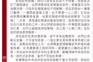 主要官員要參選行政長官,必須慎重選擇辭職宣布參選的時間,且辭職須經中央政府批准,不像退休法官胡國興那麼瀟灑,只須「通知」中央便宣布參選。近期愈來愈多的「跑馬仔」傳聞和猜測,包括政府最高層裡明爭暗鬥的疑真疑假的消息,令本已混亂的政治環境更加惡化,本已虛弱的特區政府更難運作。