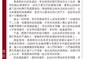 希拉莉豐富的從政經驗,所有其他候選人難以望其項背。不過,跟奧巴馬政府的密切關係,也成為希拉莉的包袱。桑德斯的支持者很多都是對美國社會的不公平現象感到憤怒。選民對政府和政客失去信心,他們認為,政客們只是為大財團、為他們的金主服務,對改善人民生活漠不關心。在這樣的社會氣氛中,桑德斯的左傾言論,給對社會不公平現象感到憤怒的人帶來希望。