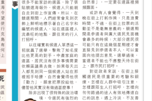 對從政者來說,在街上接觸選民是很重要的考驗和鍛煉。怎樣在人群中吸引注意,向途人傳達自己的訊息;遇上不友善的態度,甚至惡意挑釁的行為時,怎樣處理,這些都是從政者必須掌握的技能。更重要的是心態上的調適:在街上「拜票」,不能不放下身段。這種經歷,是所有從政者必須接受的洗禮。
